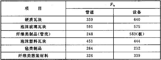 表F.0.1 每立方米絕熱層施工費(fèi)Fia(元/m3)