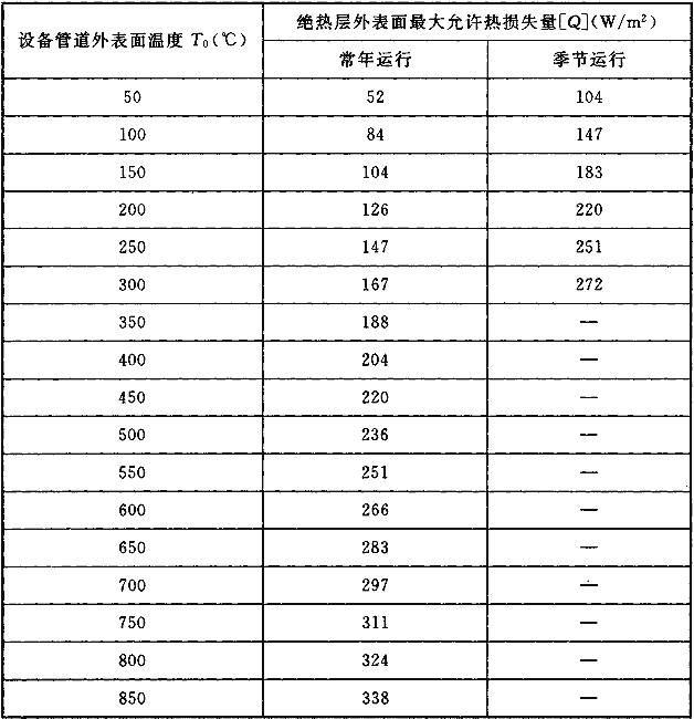 Q——以每平方米絕熱層外表面積表示的熱損失量;