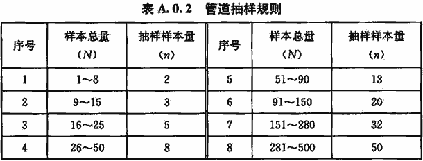 A.0.2 供熱系統(tǒng)管道樣本總量和抽樣樣本量的確定應(yīng)符合下列規(guī)定: