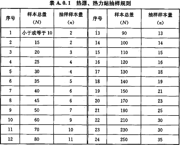 A.0.1 熱源、熱力站樣本總量和抽樣樣本量的確定應(yīng)符合下列規(guī)定: