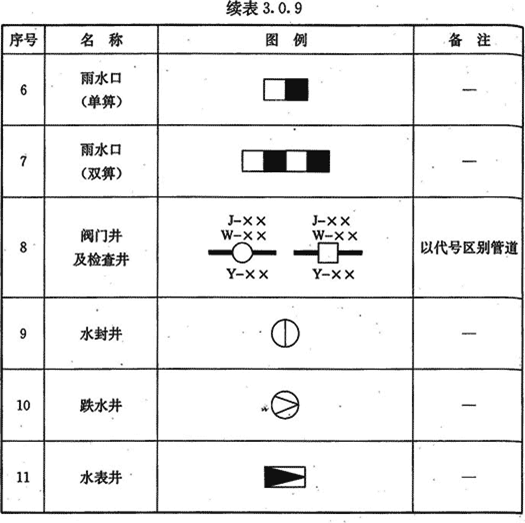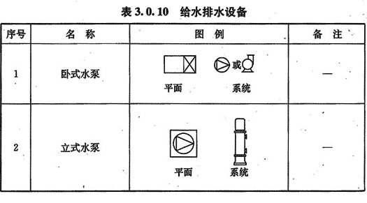 3.0.10 給水排水設(shè)備的圖裂符合表3.0.10的要求。