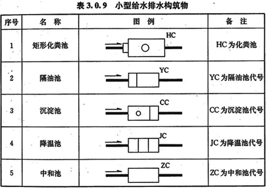 3.0.9 小型給水排水構(gòu)筑物的圖例宜符合表3.0.9的要求。