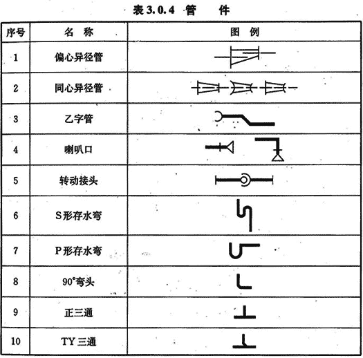 3.0.4 管件的圖例宜符合表3.0.4的要求。