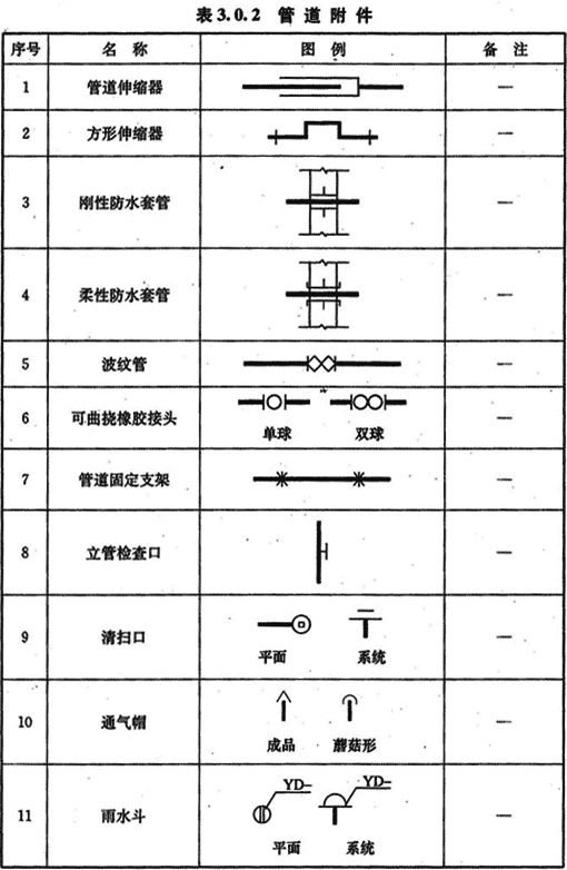 3.0.12 本標準未列出的管道、設(shè)備、配件等圖例,設(shè)計人員可自行編制并作說明,但不得與本標準相關(guān)圖例重復(fù)或混淆。