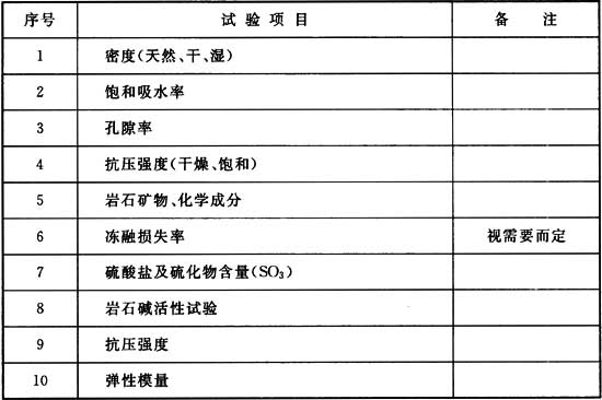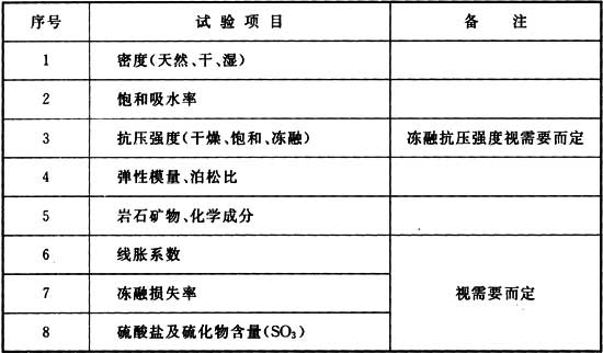 A.0.2 堆石料、砌石料原巖試驗項目應(yīng)符合表A.0.2的規(guī)定。