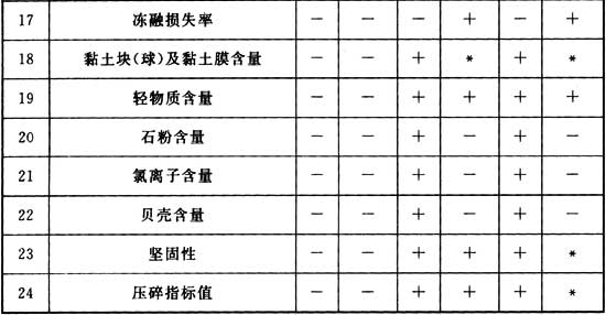 A.0.5 人工骨料細(xì)骨料試驗項目應(yīng)符合表A.0.5的規(guī)定。