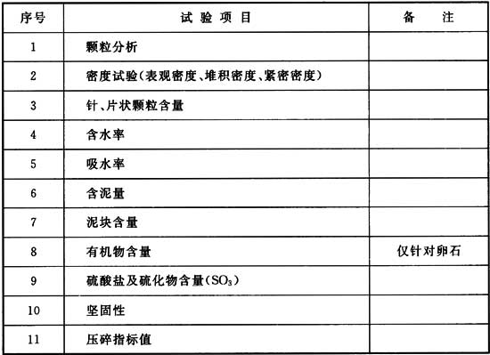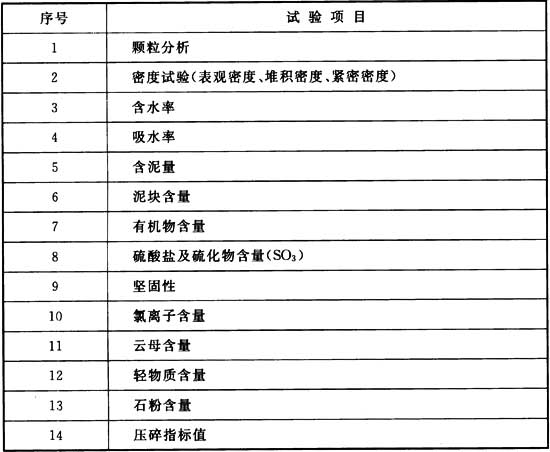 A.0.1 混凝土用砂礫料試驗項目應(yīng)符合表A.0.1的規(guī)定。