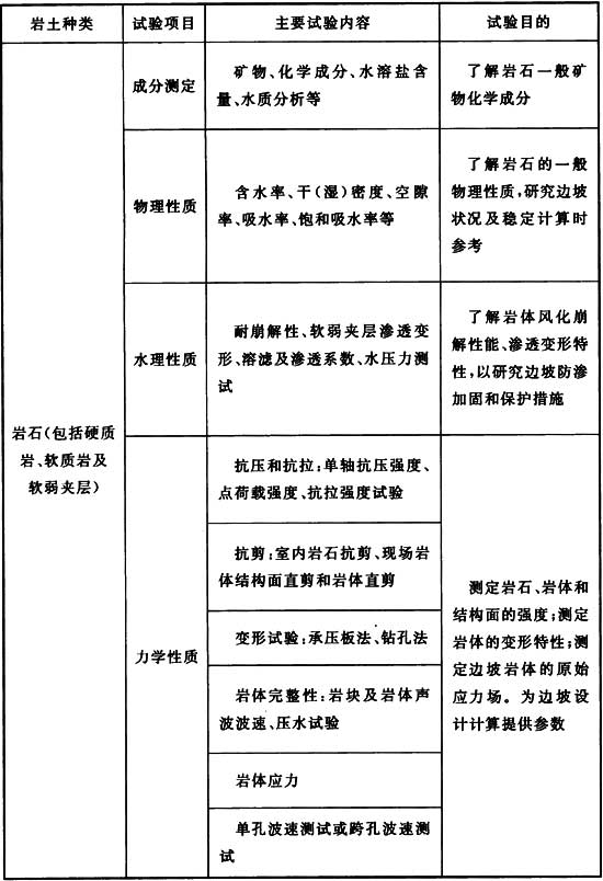 表B.0.2 巖質(zhì)邊坡勘察試驗項目