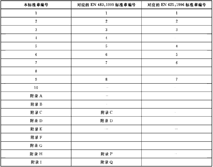 表B.1給出了本標(biāo)準(zhǔn)與EN 483:1999和EN 625:1996技術(shù)性差異及其原因的一覽表。