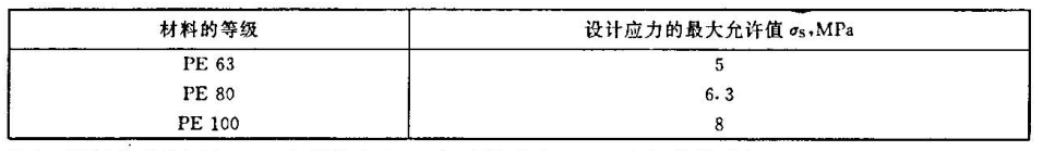 5.2 輸送20℃的水,C最小可采用cmin=1.25。由式(1)得到的不同等級材料的設(shè)計應(yīng)力的最大允許值,見表3。
