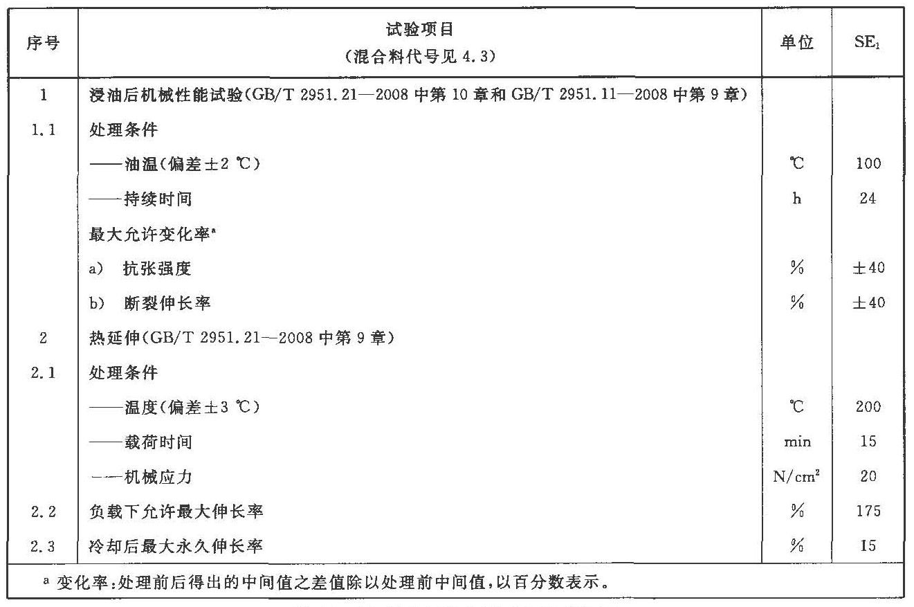 c)EPR、HEPR和XLPE絕緣及彈性體護(hù)套的熱延伸試驗(見16.9)。