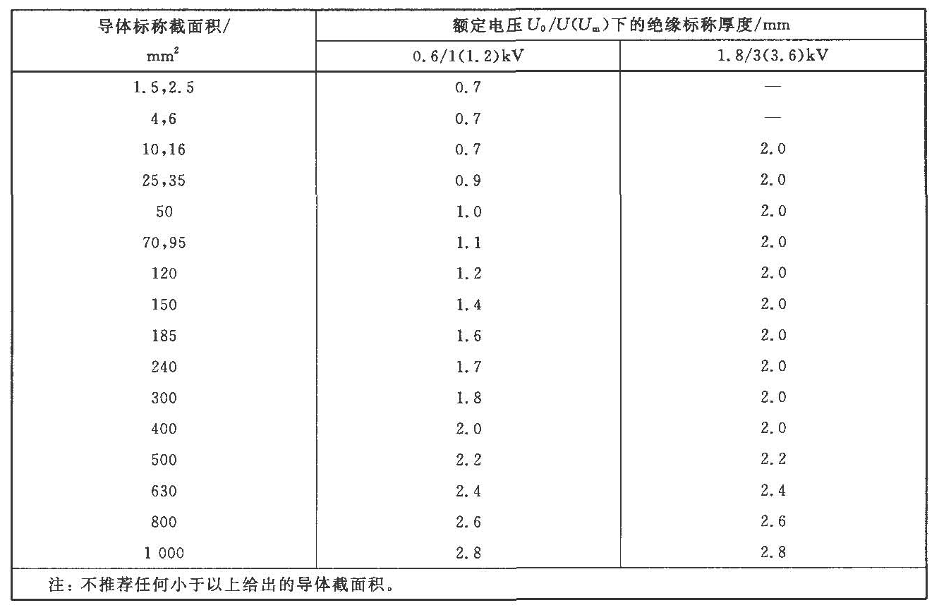 注:上述電壓的表示方法是合適的。盡管在一些國家采用其他的表示方法。例如:1.7/3 kv或1.9/3.3 kV代替1.8/3 kV。