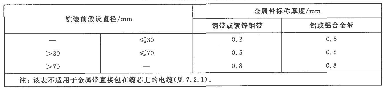 電纜護(hù)層,諸如護(hù)套和鎧裝,其厚度通常與電纜標(biāo)稱直徑有一個“階梯表”的關(guān)系。