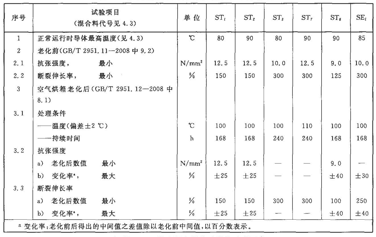 表18 護(hù)套混合料機(jī)械性能試驗要求(老化前后)