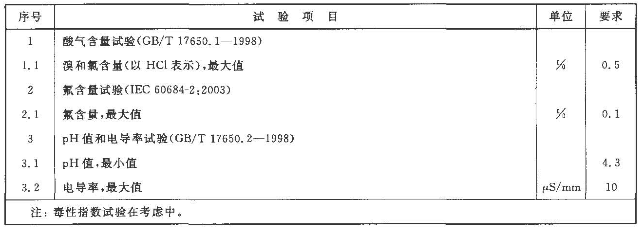 表21 無鹵護(hù)套混合料的特殊性能試驗要求