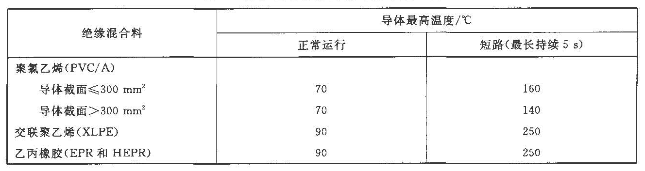 本部分所包括的各種絕緣混合料的導(dǎo)體最高溫度列于表3。