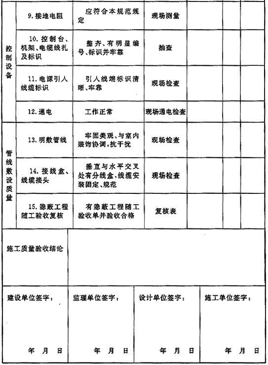 3綜合安裝質(zhì)量的檢查結(jié)果填寫在驗(yàn)收意見欄內(nèi),并扼要說明情況。