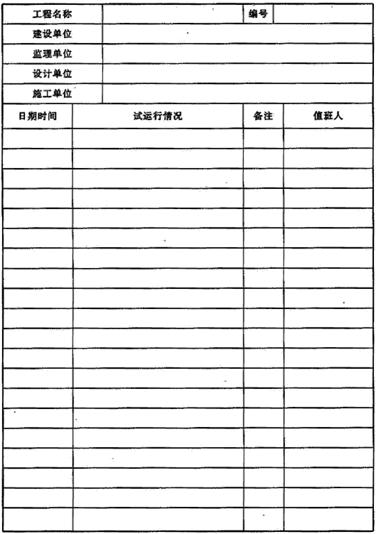 5.0.1 系統(tǒng)應(yīng)在調(diào)試合格,且調(diào)試報(bào)告經(jīng)建設(shè)單位認(rèn)可后進(jìn)行試運(yùn)行。試運(yùn)行期間,應(yīng)按本規(guī)范表A. 0. 4的要求做好試運(yùn)行記錄。