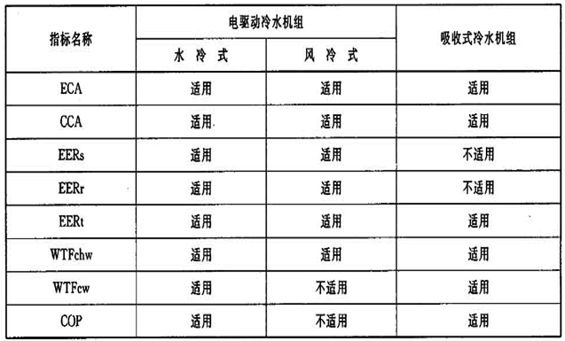 表A.1 空調(diào)系統(tǒng)經(jīng)濟(jì)運(yùn)行評(píng)價(jià)指標(biāo)的運(yùn)用范圍(針對(duì)不同的冷源)