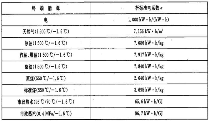 β——電折算成標(biāo)準(zhǔn)煤的系數(shù),單位為千克標(biāo)準(zhǔn)煤每千瓦時(shí)[kgce/(kW·h)],取值見附錄B。
