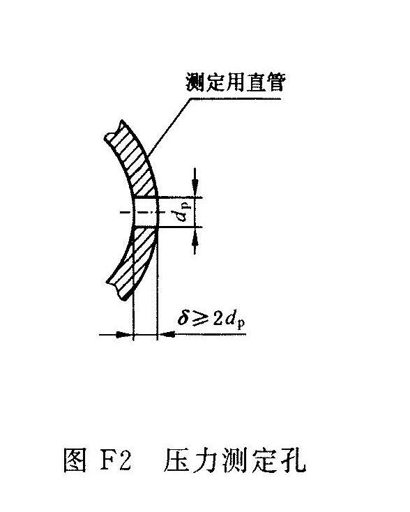 測定孔徑為2~6 mm或1/10測定用直管內(nèi)徑的較小值,如圖F2所示,孔與管內(nèi)壁成垂直方向,深度至少為孔徑的2倍,其表面應(yīng)光滑,孔口應(yīng)無毛刺。