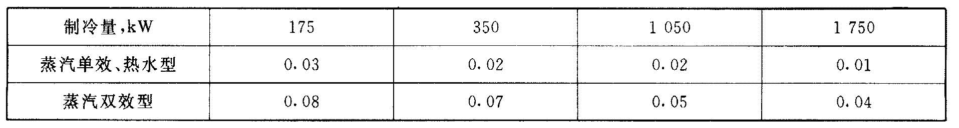 E3 散熱損失系數(shù)隨機組型式、結(jié)構(gòu)、制冷量、保溫結(jié)構(gòu)不同而異,按式(E3)計算的,名義工況時散熱損失系數(shù)的平均值見表E1。