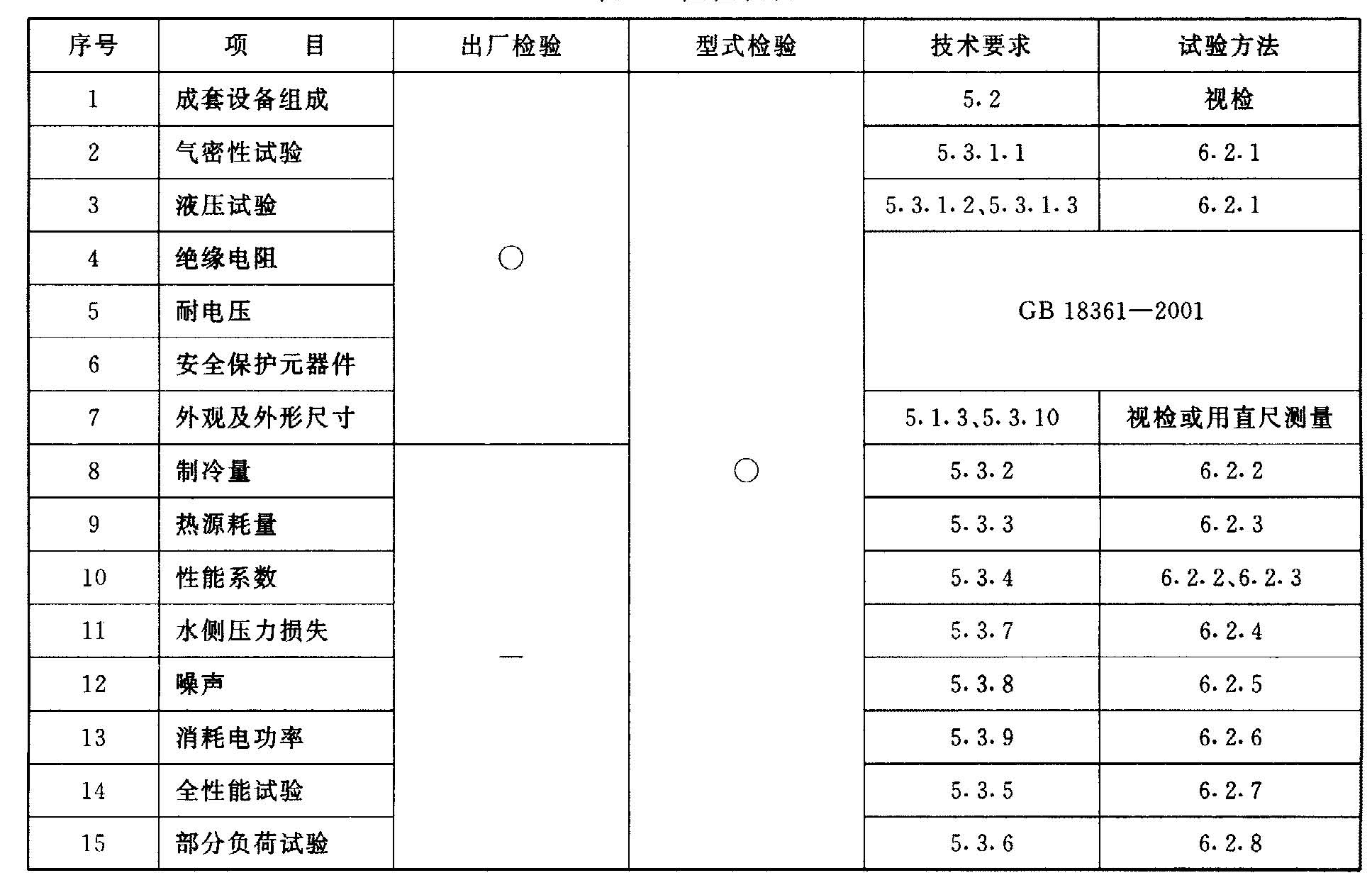 每臺機組均應(yīng)做出廠檢驗,檢驗項目按表5的規(guī)定。