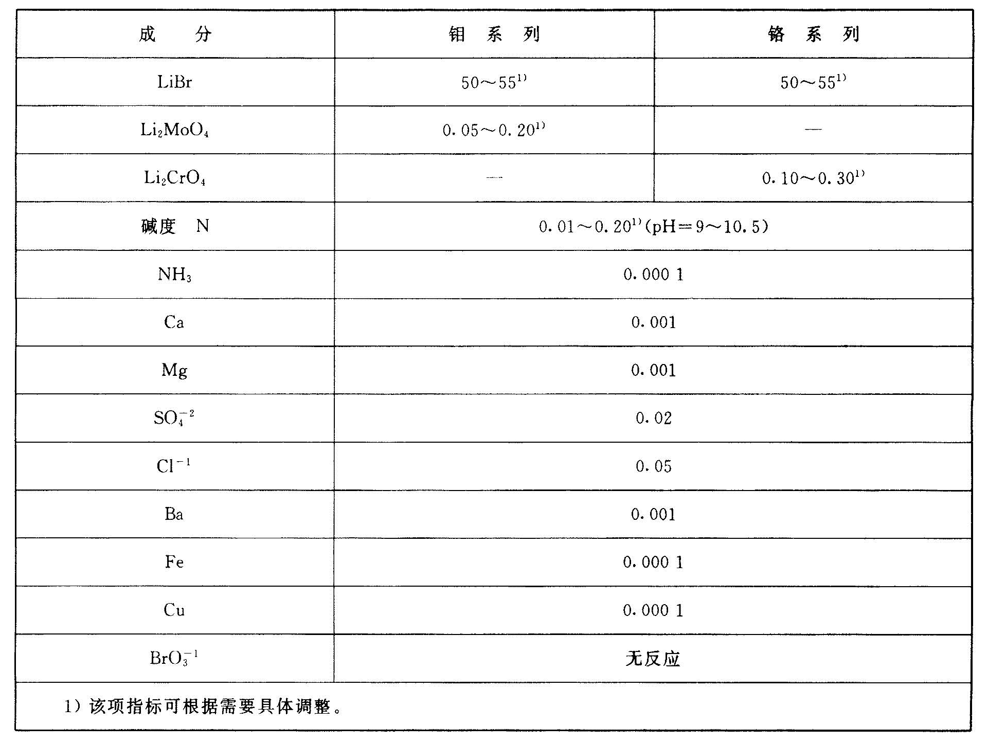 A1 溴化鋰溶液技術(shù)要求見表Al。