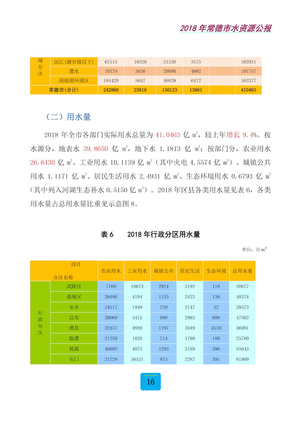 供用水量 全市供水總量41.0461億m2,比上年增加3.5400億m,其中地表水源供水量39.8650億m,地下水供水量1.1813億m2;全市用水總量為41.0463億m,農(nóng)業(yè)用水26.6428億m、工業(yè)用水10.1139億m2(其中火電4.5574億m3)、城鎮(zhèn)公共用水1.1170 億m、居民生活用水2.4931億m2、生態(tài)環(huán)境用水0.6793億m;全市用水消耗量15.3258 億m3,耗水率為37.3%。