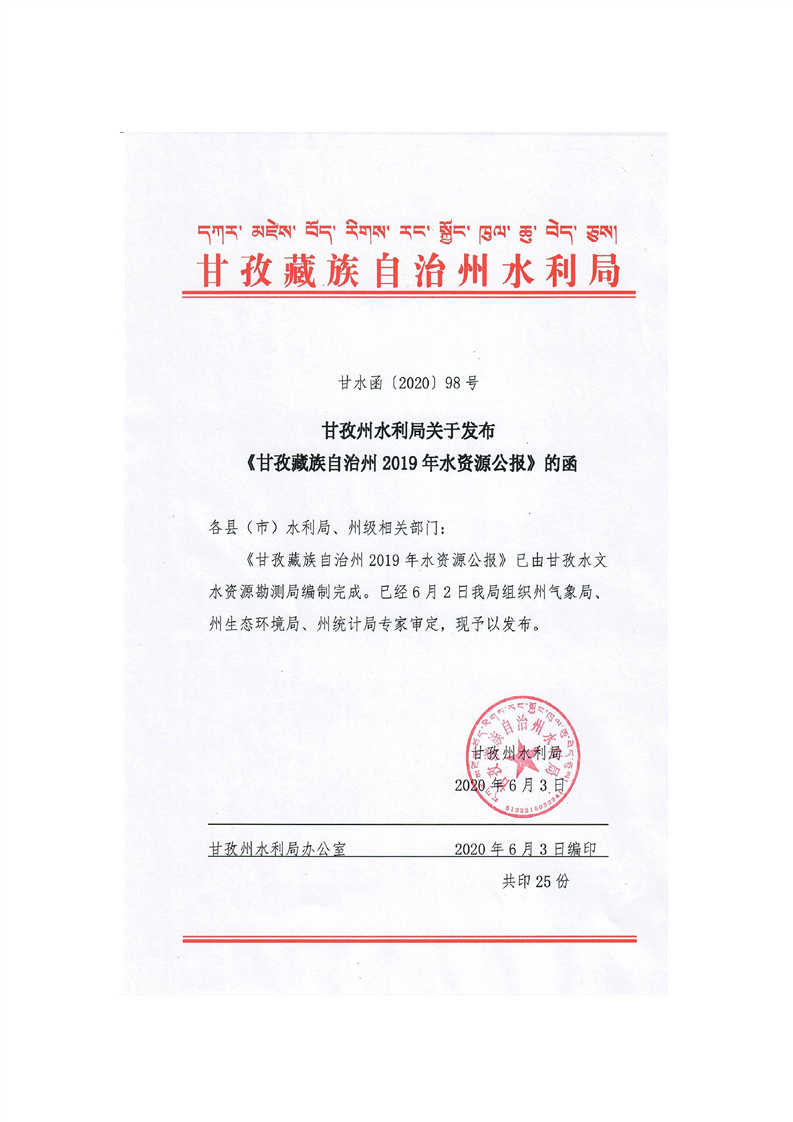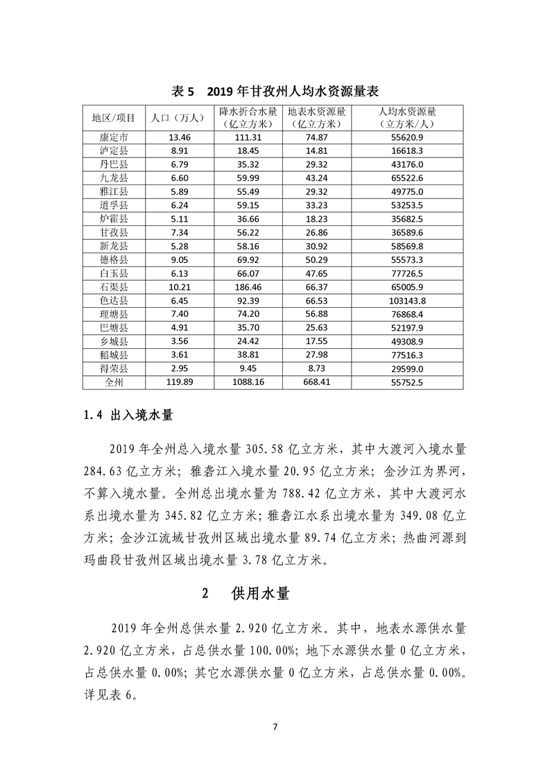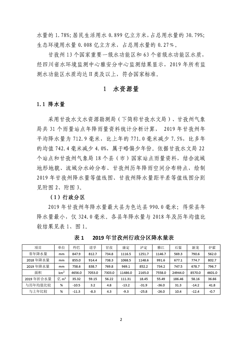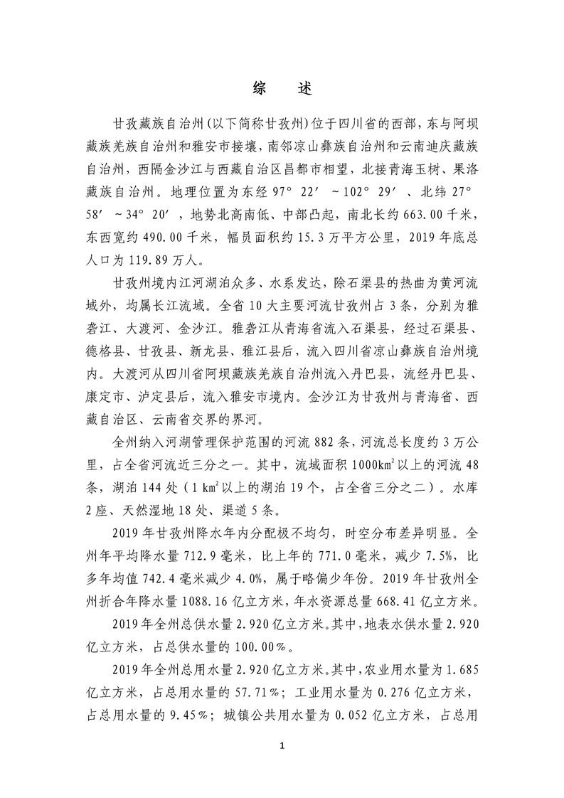 2019年四川省甘孜藏族自治州水資源公報(bào)