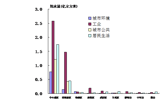 按用途分,其中居民生活2.53億立方米,城市公共1.75億立方米,工業(yè)用水4.50億立方米,城市環(huán)境1.06億立方米。