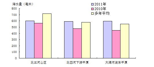 2011年全市平均降水量593.1毫米,折合降水總量為70.70億立方米,比上年度偏多26.1%,比多年平均偏多3.2%,屬于平水年份。