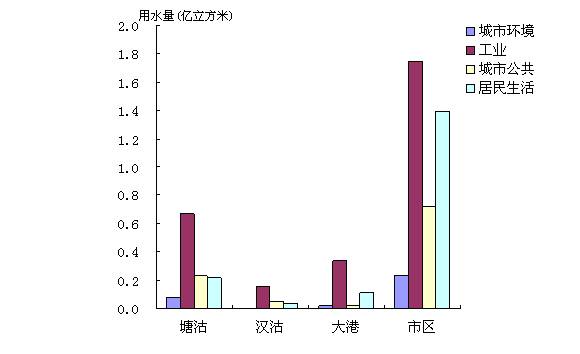 2006年全市總用水量22.96億立方米,其中生產(chǎn)用水19.35億立方米,生活用水3.12億立方米,生態(tài)用水0.49億立方米。生產(chǎn)用水中,第一產(chǎn)業(yè)用水13.62億立方米,第二產(chǎn)業(yè)用水4.59億立方米,第三產(chǎn)業(yè)用水1.14億立方米。生活用水中,城鎮(zhèn)居民用水2.03億立方米,農(nóng)村居民用水1.09億立方米。