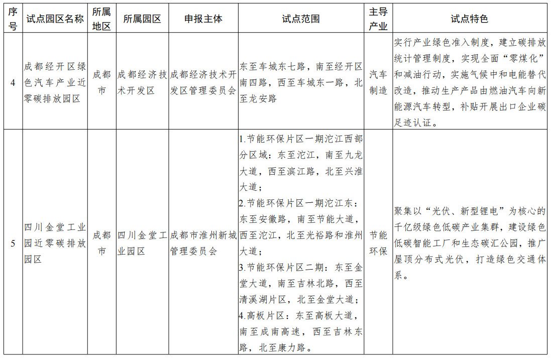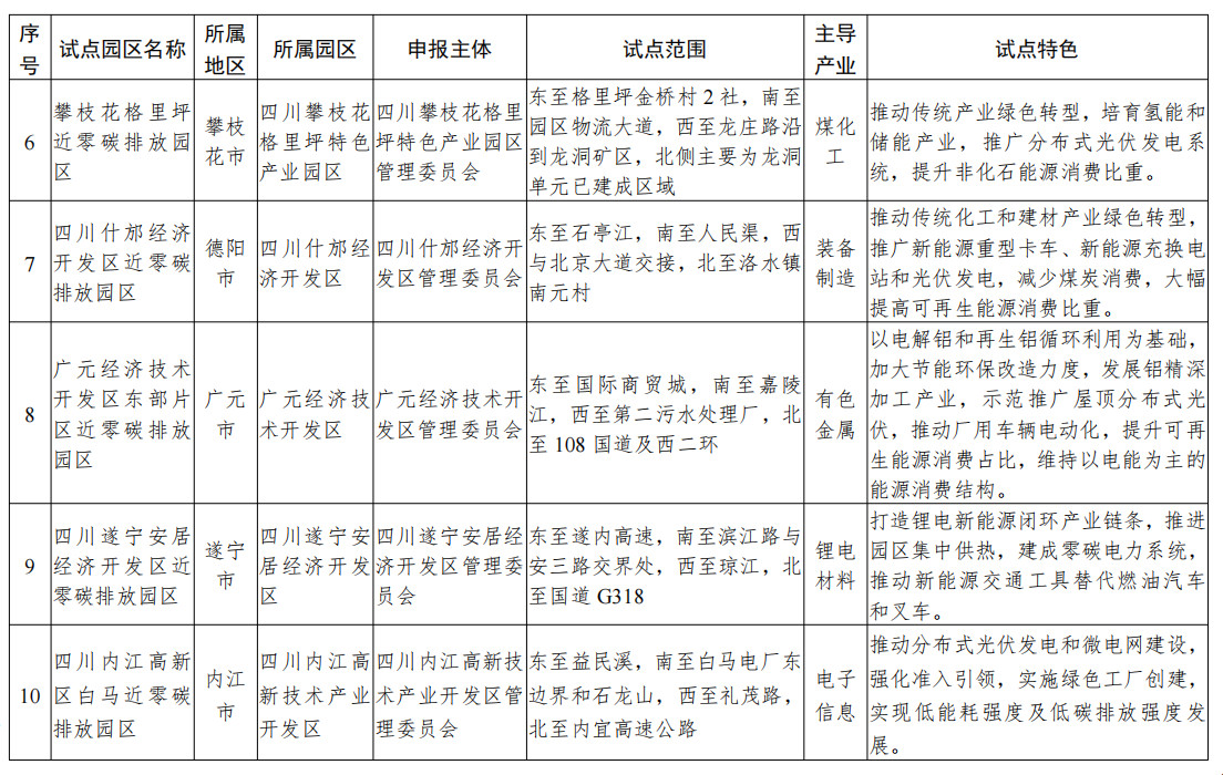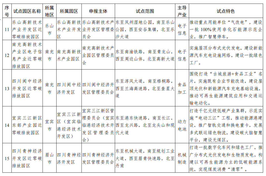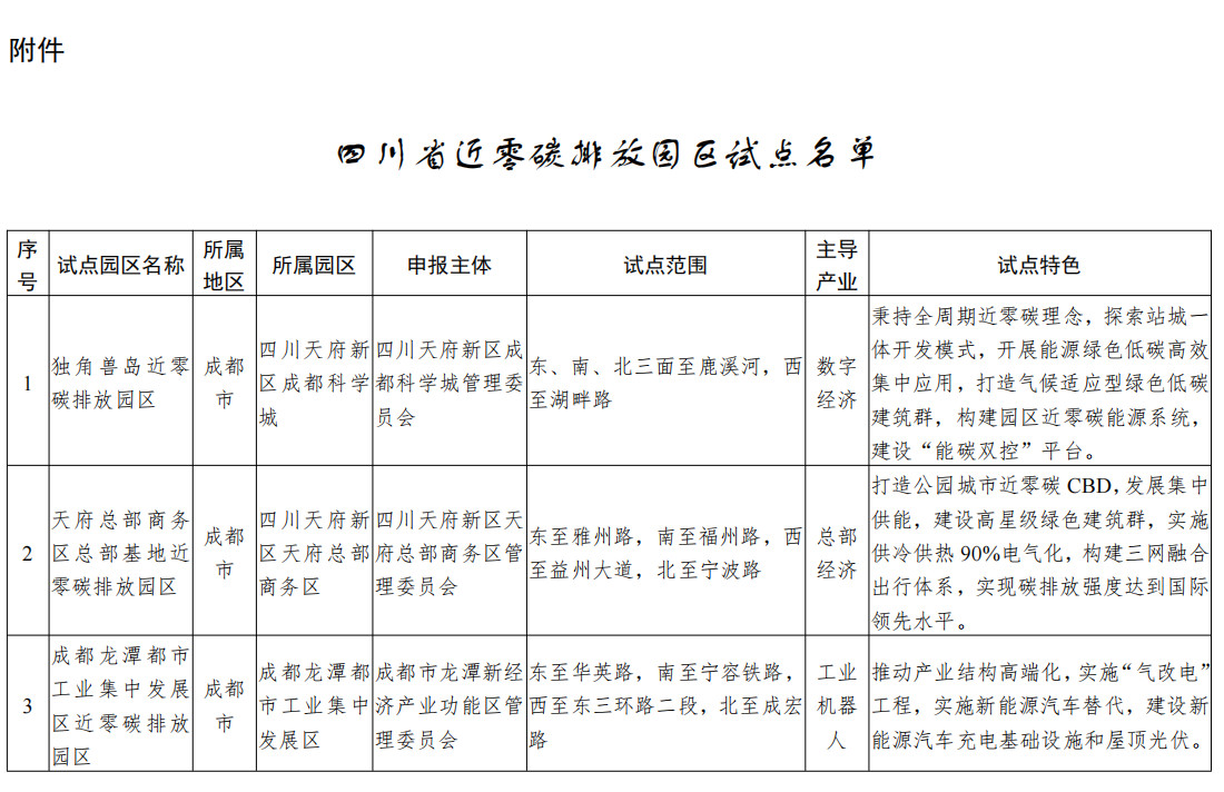 附件:四川省近零碳排放園區(qū)試點名單