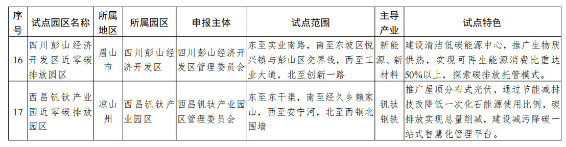 獲悉,8月24日,四川省生態(tài)環(huán)境廳、四川省經(jīng)濟(jì)和信息化廳公布四川省近零碳排放園區(qū)試點名單,共17個園區(qū)納入試點,詳情如下:
