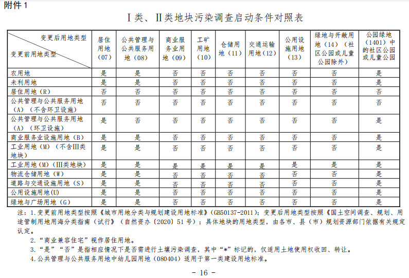 附件:1.Ⅰ類、Ⅱ類地塊污染調(diào)查啟動(dòng)條件對(duì)照表