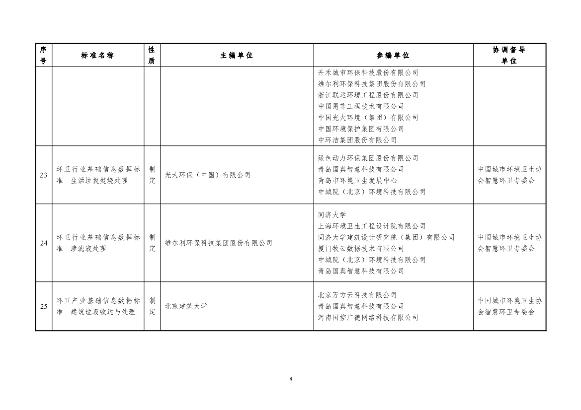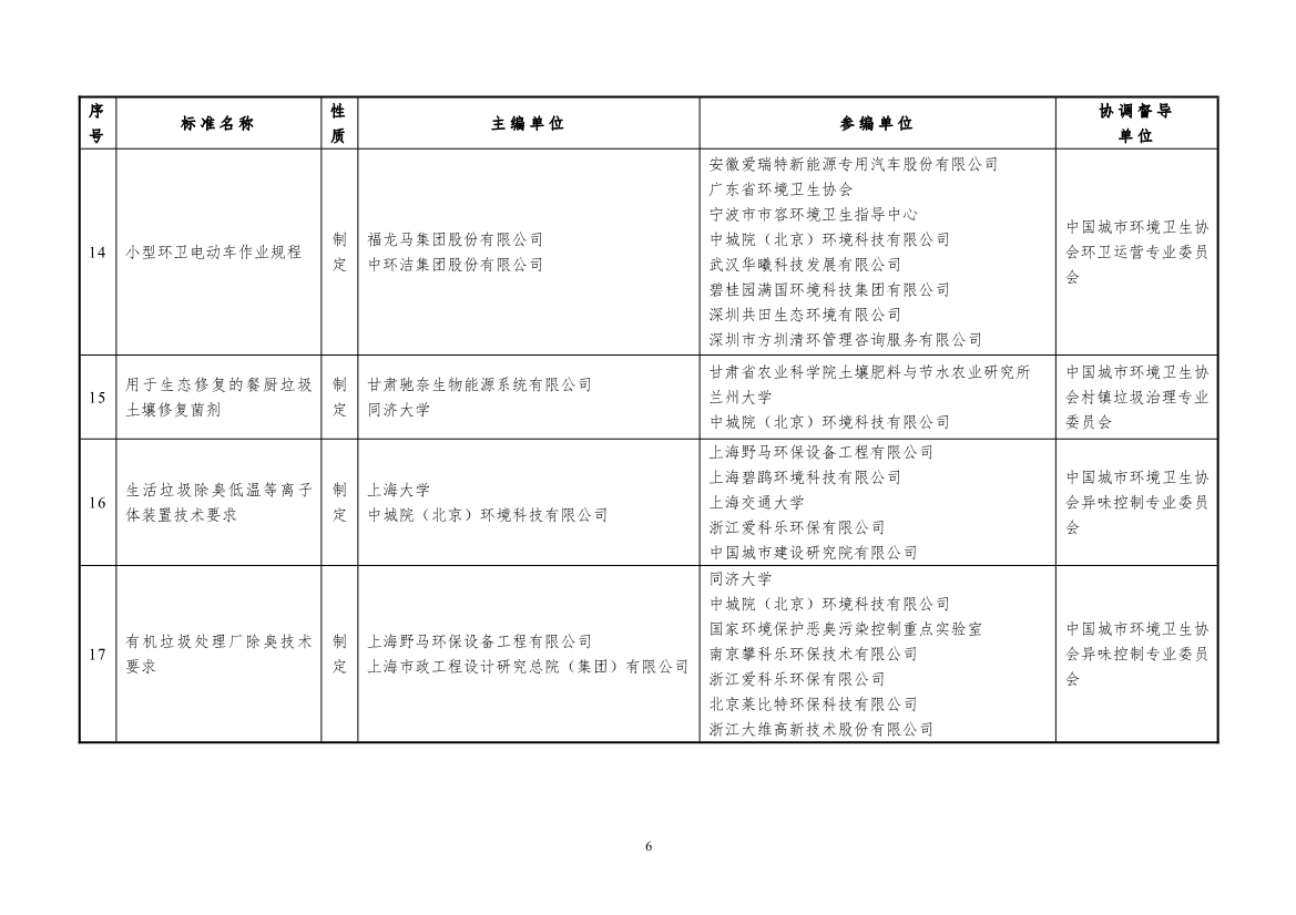 《2021-2022年中國(guó)城市環(huán)境衛(wèi)生協(xié)會(huì)團(tuán)體標(biāo)準(zhǔn)制修訂計(jì)劃(第六批)》印發(fā)!