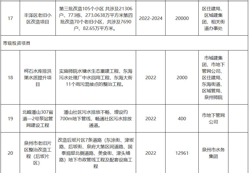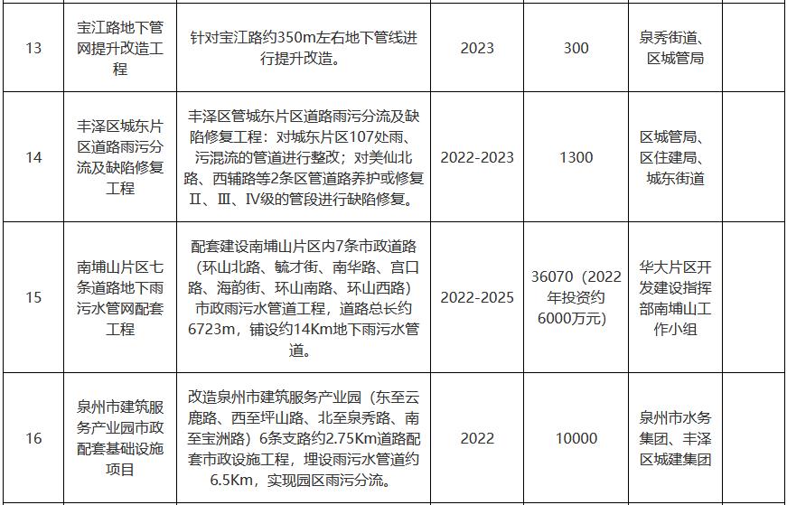 福建省泉州市豐澤區(qū)城鎮(zhèn)污水處理提質(zhì)增效工作實施方案(附項目計劃表)