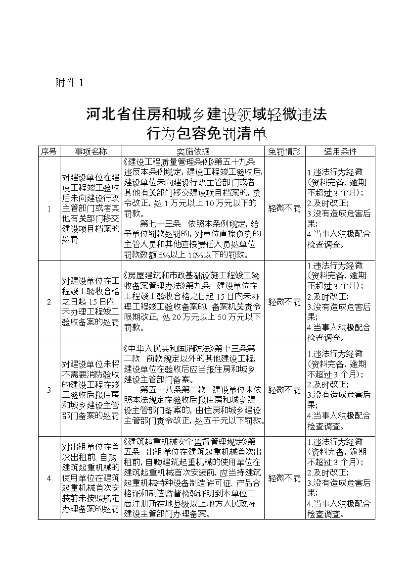 附件:1.河北省住房和城鄉(xiāng)建設(shè)領(lǐng)域輕微違法行為包容免罰清單