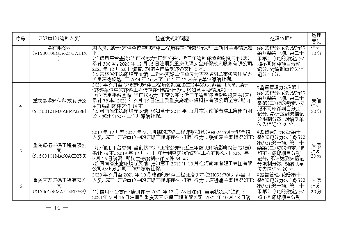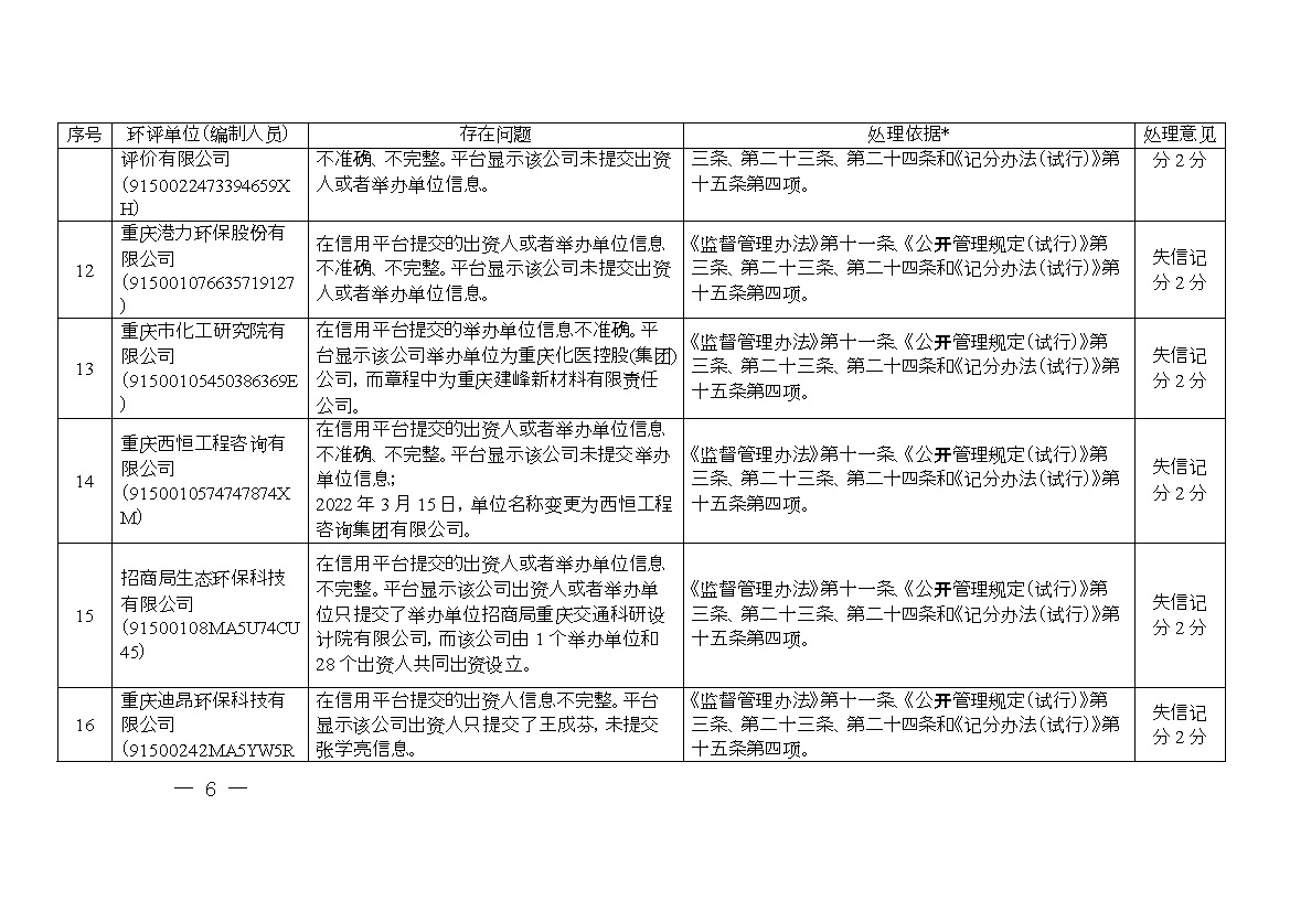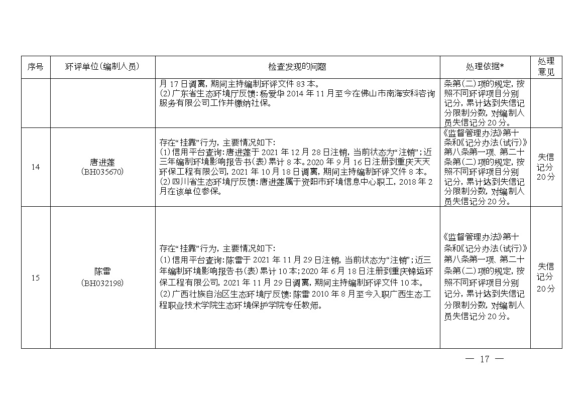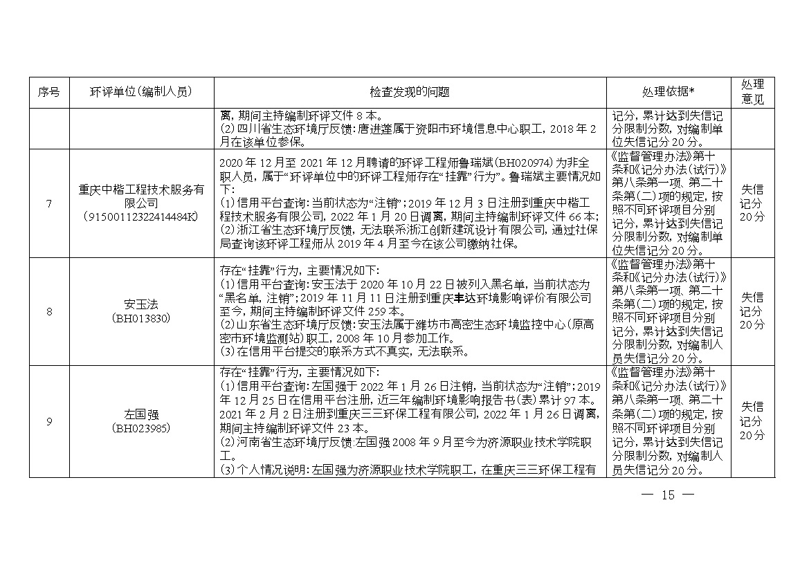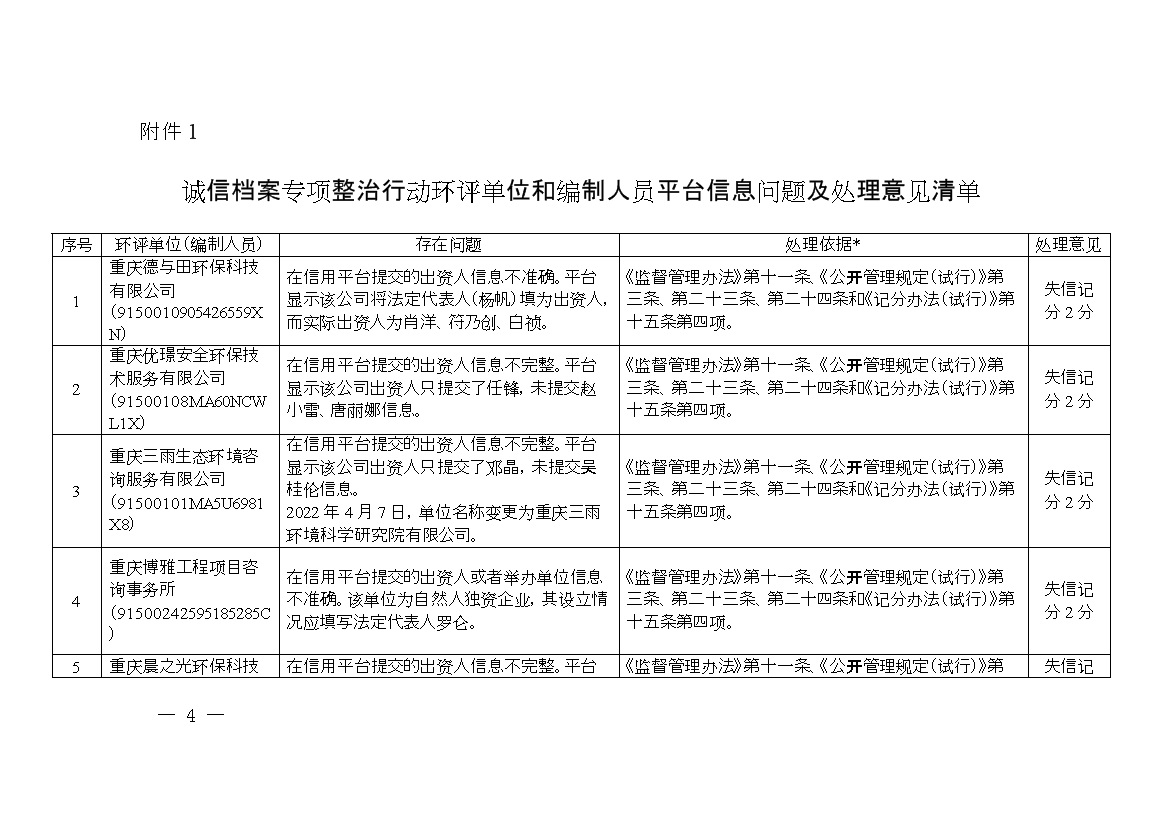 附件:1.誠信檔案專項(xiàng)整治行動(dòng)環(huán)評(píng)單位和編制人員平臺(tái)信息問題及處理意見清單
