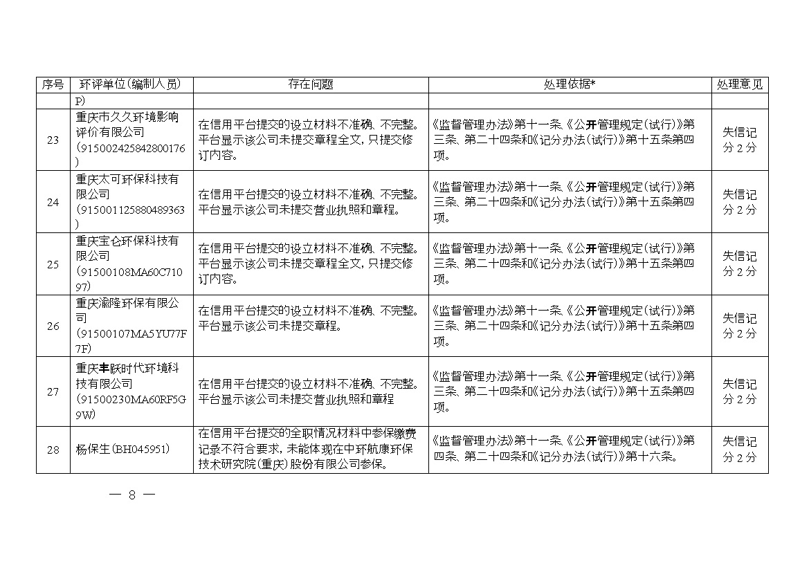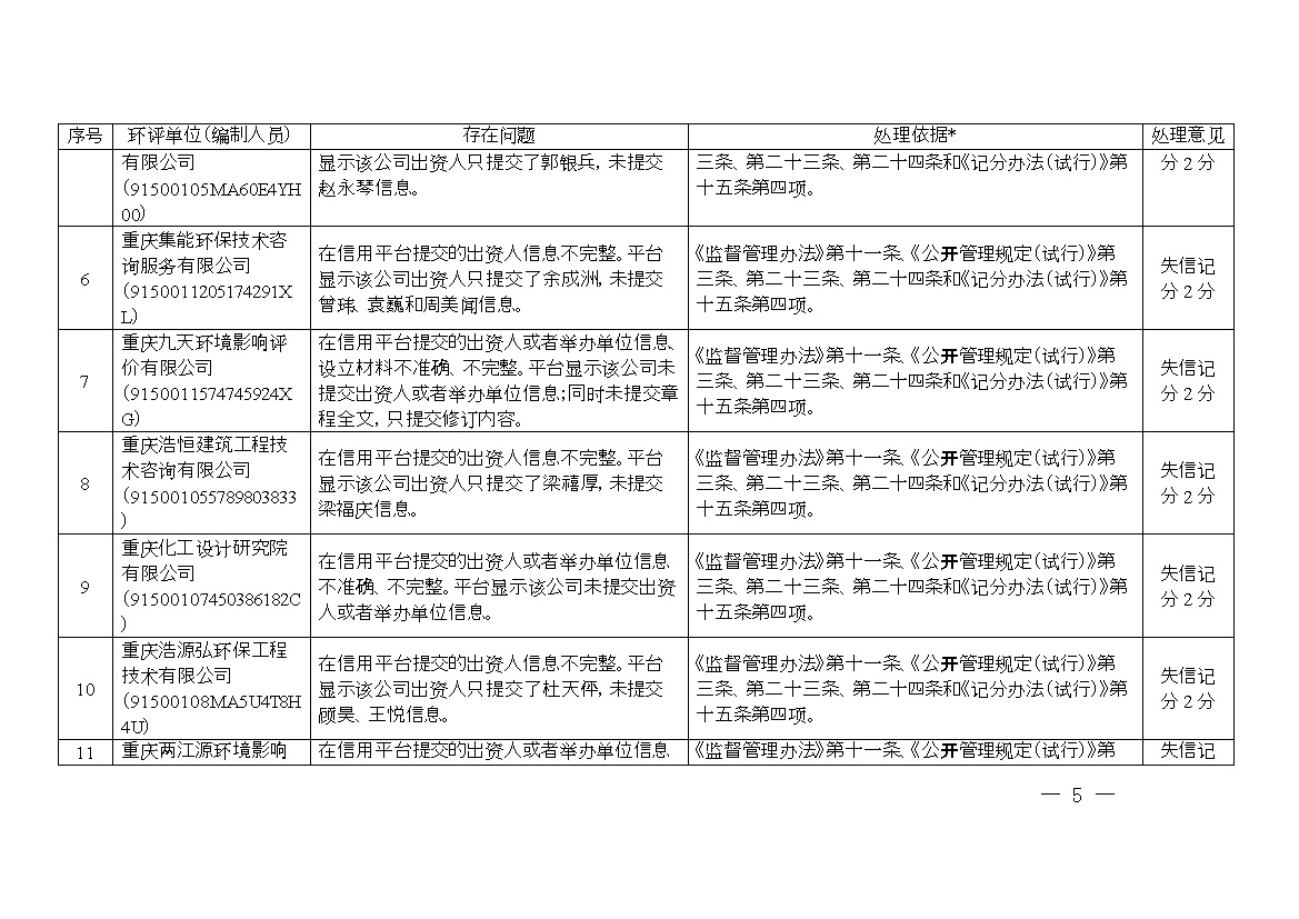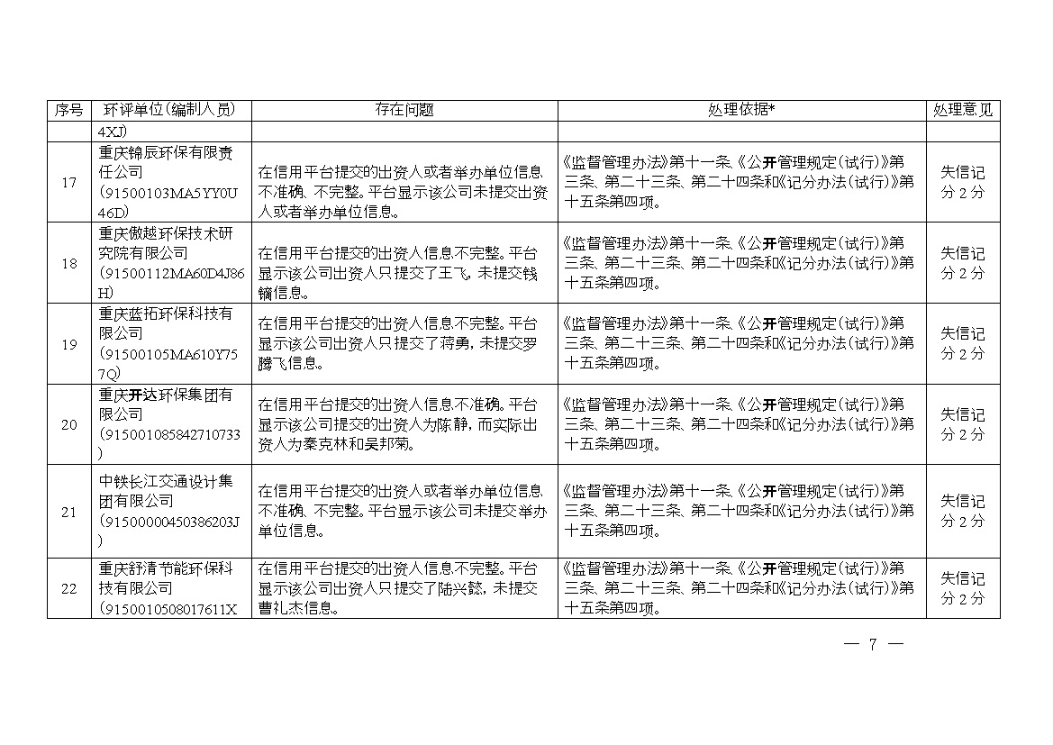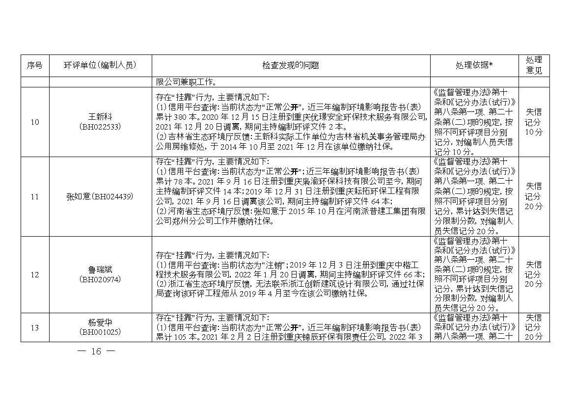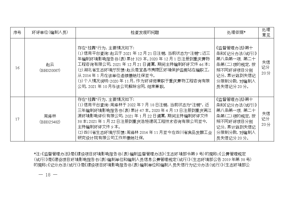 附件:1.誠信檔案專項(xiàng)整治行動(dòng)環(huán)評(píng)單位和編制人員平臺(tái)信息問題及處理意見清單