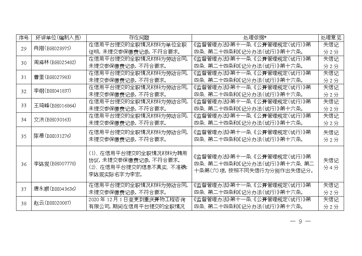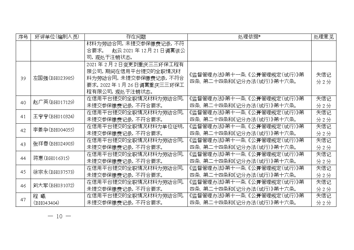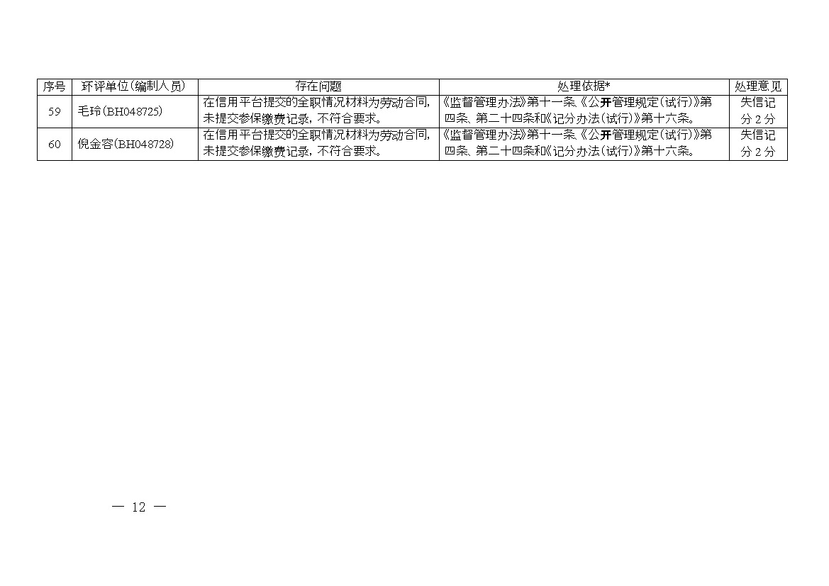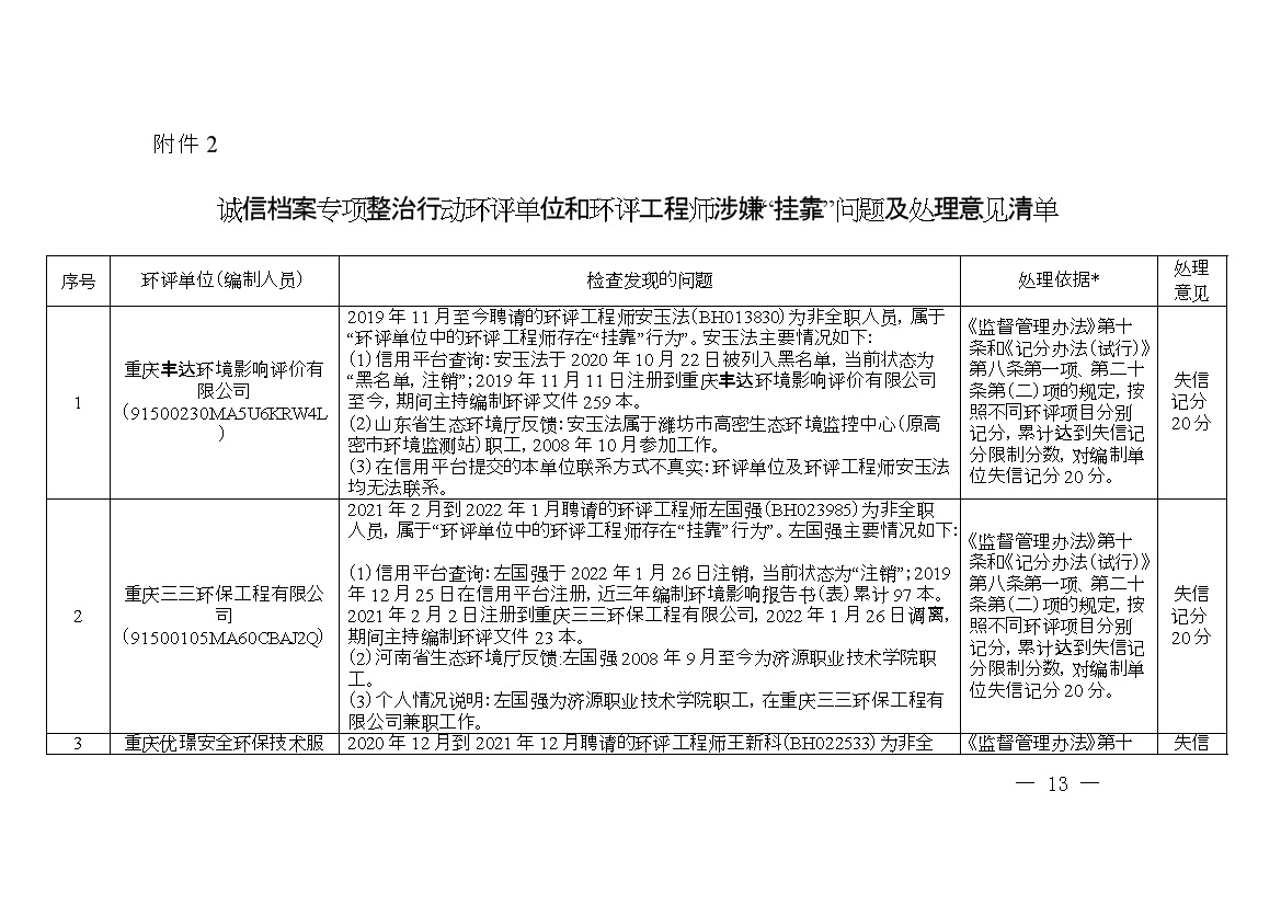 2. 誠信檔案專項(xiàng)整治行動(dòng)環(huán)評(píng)單位和環(huán)評(píng)工程師涉嫌“掛靠”問題及 處理意見清單