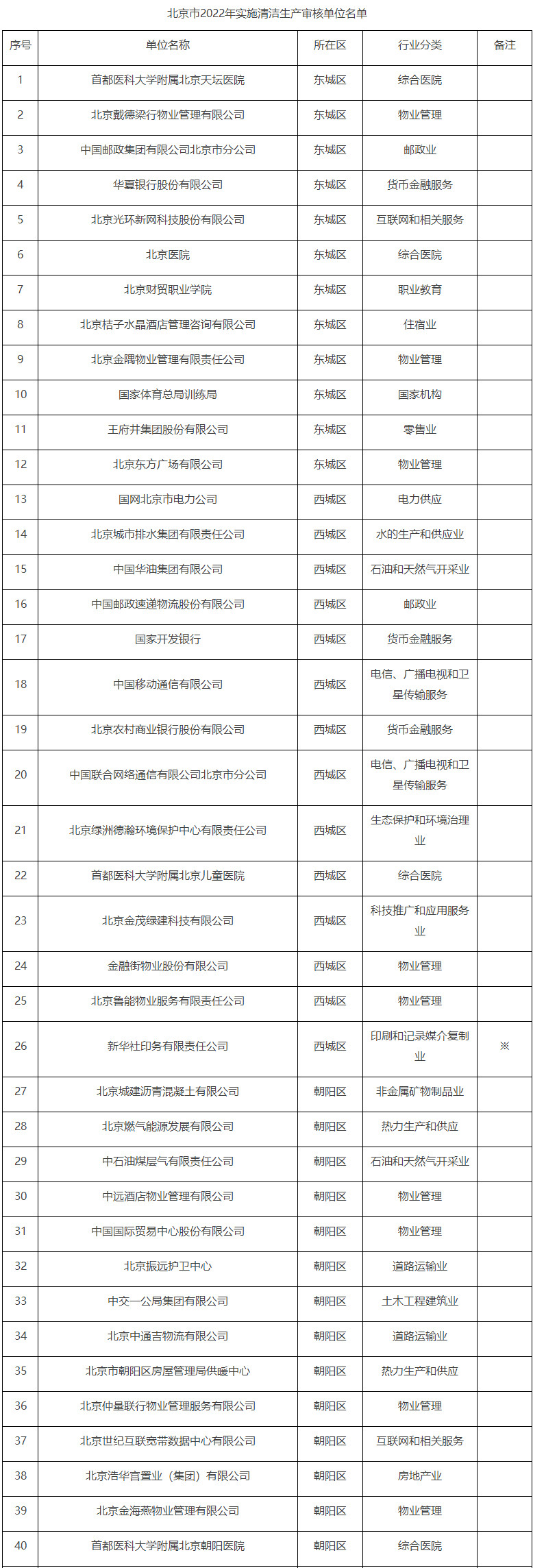 附件:北京市2022年實施清潔生產(chǎn)審核單位名單