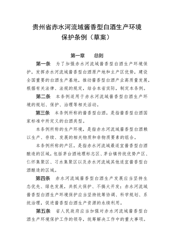 《貴州省赤水河流域醬香型白酒生產(chǎn)環(huán)境保護(hù)條例(草案)》征求修改意見(jiàn)