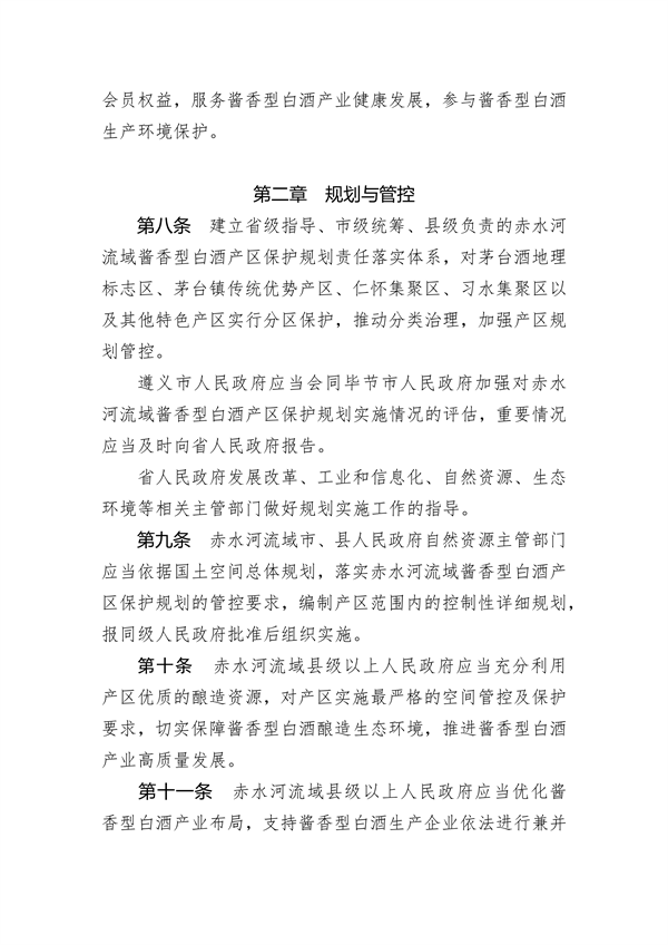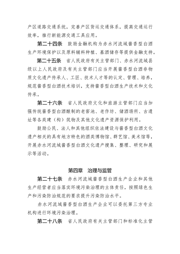 貴州省人大常委會(huì)法制工作委員會(huì)公開(kāi)征求《貴州省赤水河流域醬香型白酒生產(chǎn)環(huán)境保護(hù)條例(草案)》修改意見(jiàn),該條例從加強(qiáng)污染治理、推進(jìn)綠色生產(chǎn)、加強(qiáng)綜合監(jiān)管三個(gè)方面,切實(shí)保護(hù)高品質(zhì)醬香型白酒的生產(chǎn)環(huán)境。詳情如下: