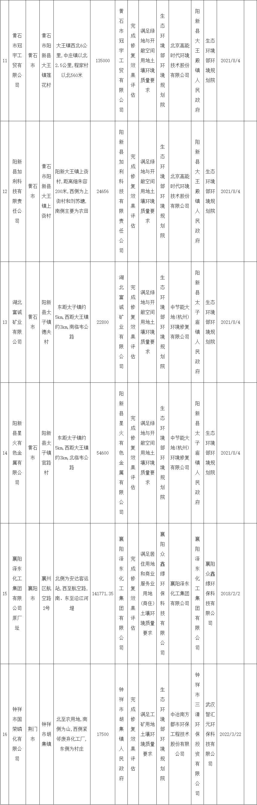 湖北省發(fā)布建設(shè)用地土壤污染風(fēng)險(xiǎn)管控和修復(fù)名錄(2022年第四批)