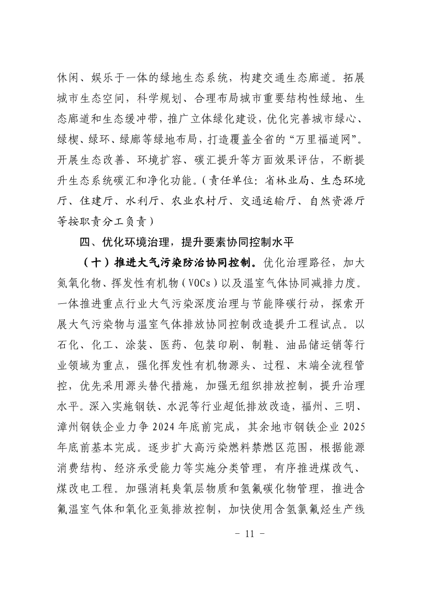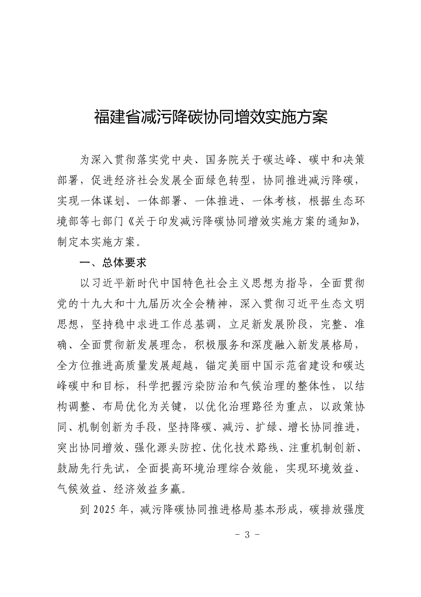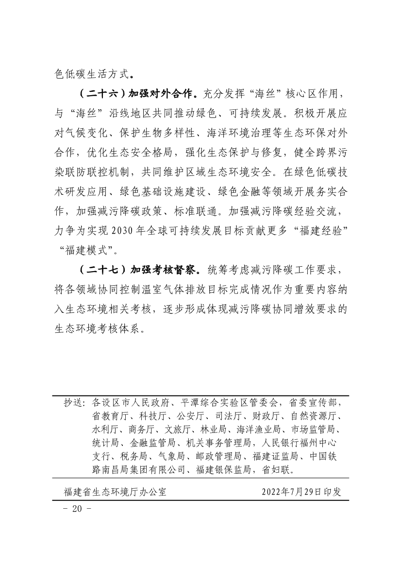 福建省生態(tài)環(huán)境廳等六部門關(guān)于印發(fā)《福建省減污降碳協(xié)同增效實施方案》的通知