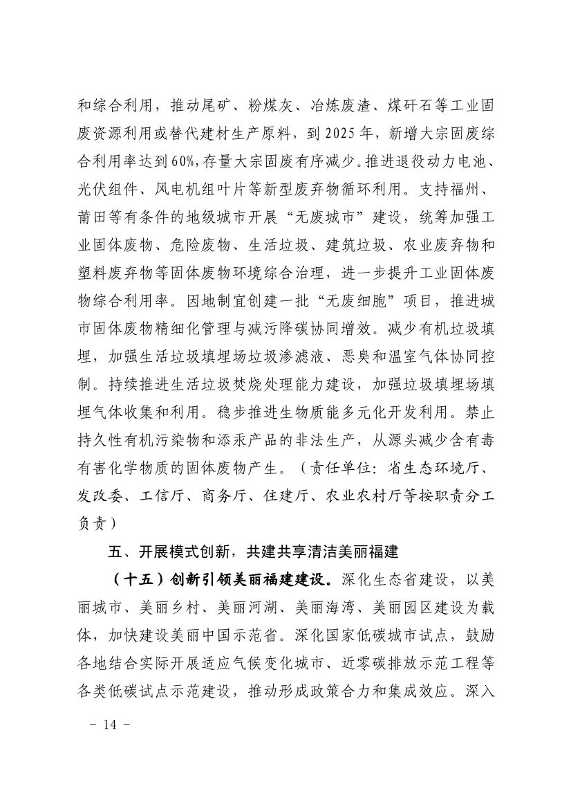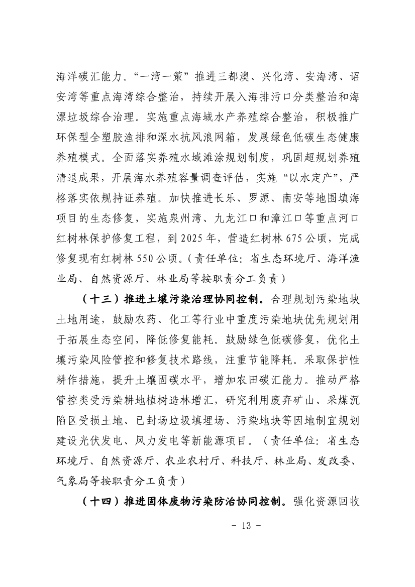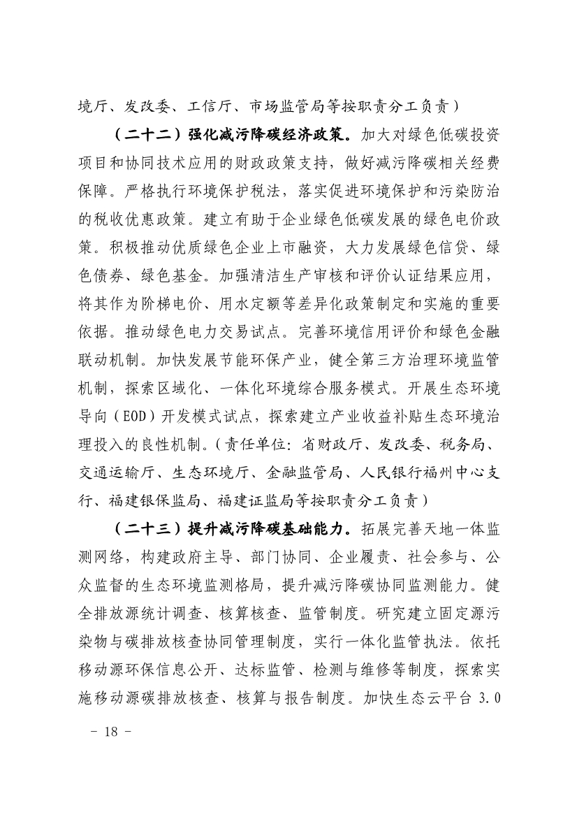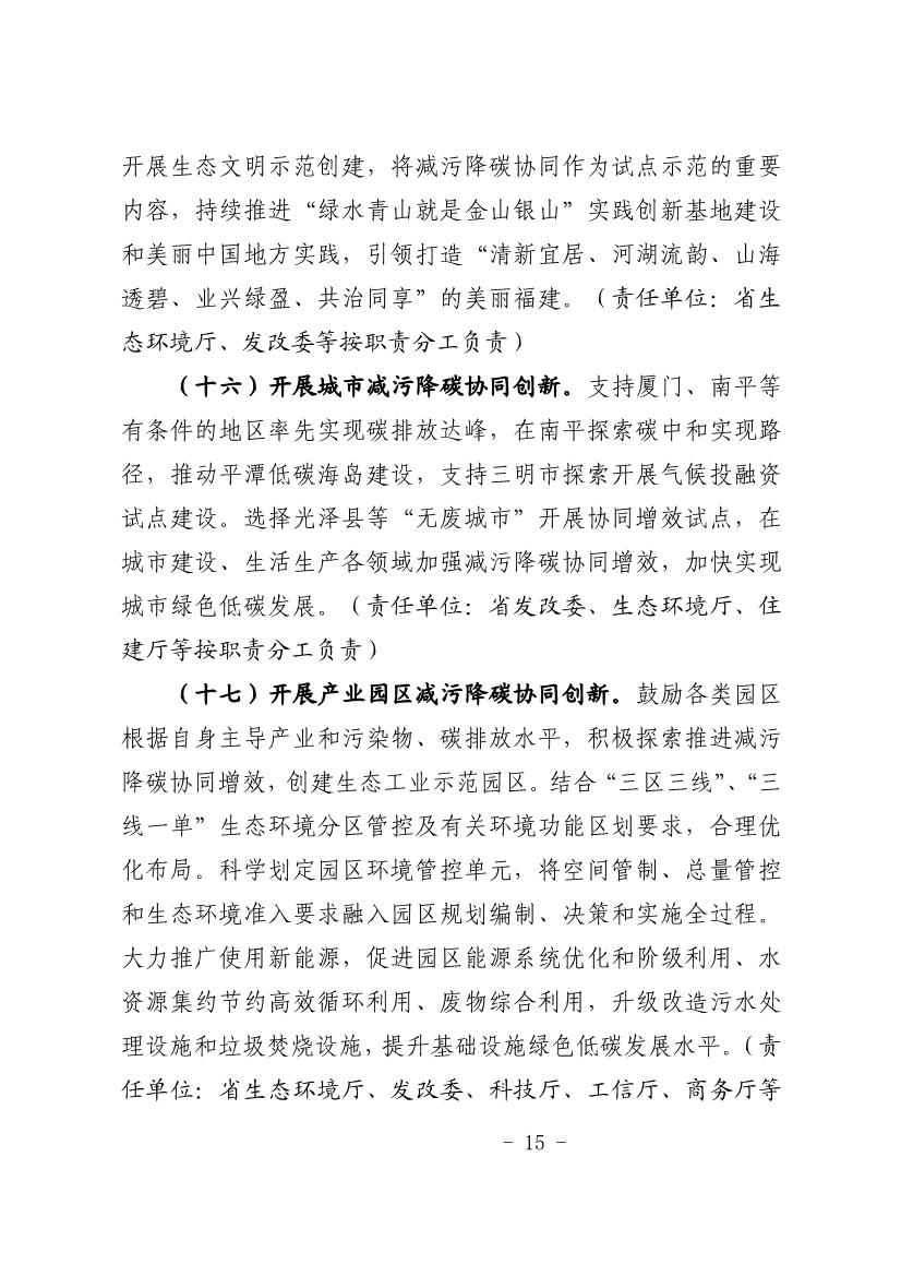 福建省生態(tài)環(huán)境廳等六部門關(guān)于印發(fā)《福建省減污降碳協(xié)同增效實施方案》的通知