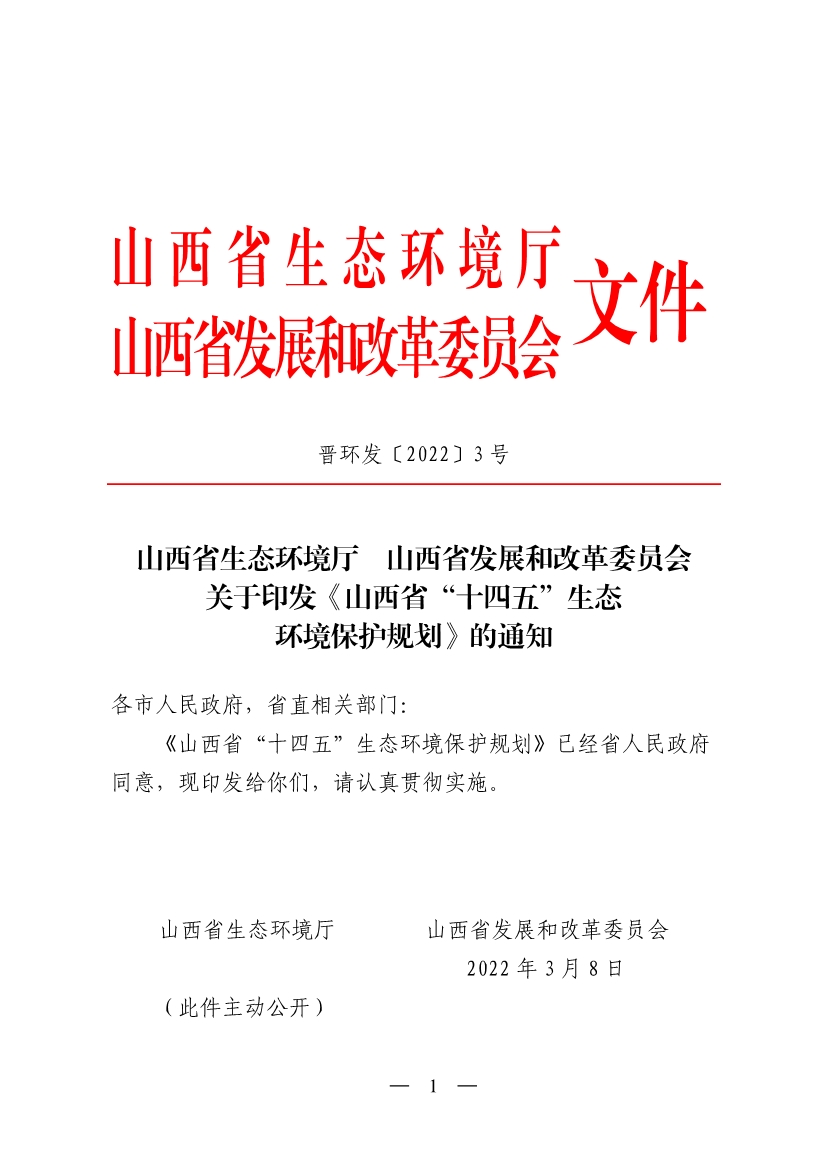 山西省生態(tài)環(huán)境廳 山西省發(fā)展和改革委員會(huì) 關(guān)于印發(fā)《山西省“十四五”生態(tài)環(huán)境保護(hù)規(guī)劃》的通知?