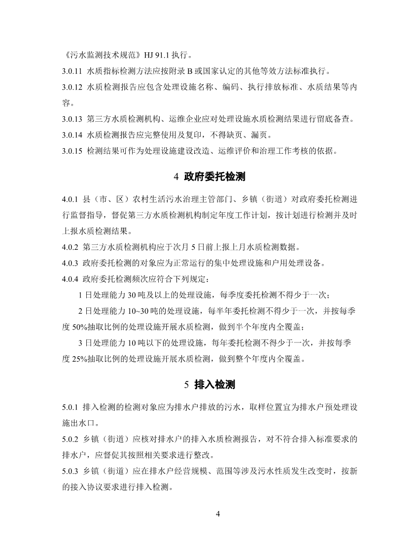 本導(dǎo)則適用于檢測農(nóng)村生活污水處理設(shè)施進(jìn)出水水質(zhì)的政府委托檢測、企業(yè)自檢、排入檢測、驗(yàn)收檢測和在線監(jiān)測,不適用于監(jiān)督性監(jiān)測。